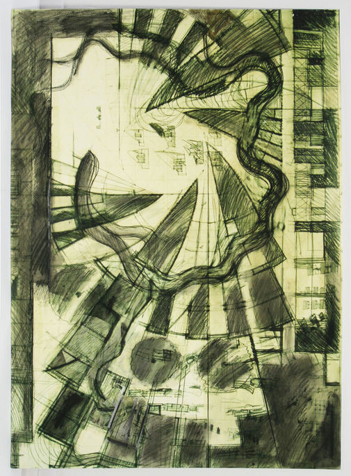 These drawings represent a retrospective engagement with the original design for the Heinz Galinski School in Berlin. They present expressive variations of both plans and elevations. It is one of the architect’s guiding principles to develop an idea through drawing in such a comprehensive manner that the studies of the building become simultaneously architectural investigations and autonomous graphic works.